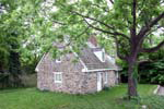 2˝-story stuccoed brick building with gable roof of uneven pitch and