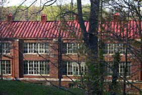 abandoned, signs of deterioration of the metal roofs, masonry and