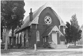 of Queen Anne style ecclesiastical architecture. A large cemetery