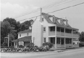 2˝-story, side-gabled brick structure, with a two-story porch and a